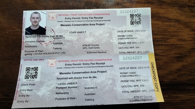 Likewise, Manaslu Conservation Area Permit costs Rs. 3000 and the cost of Annapurna Conservation Area Permit is the same RS. 3000. You require both permits for Manaslu Circuit Trek 14 days.