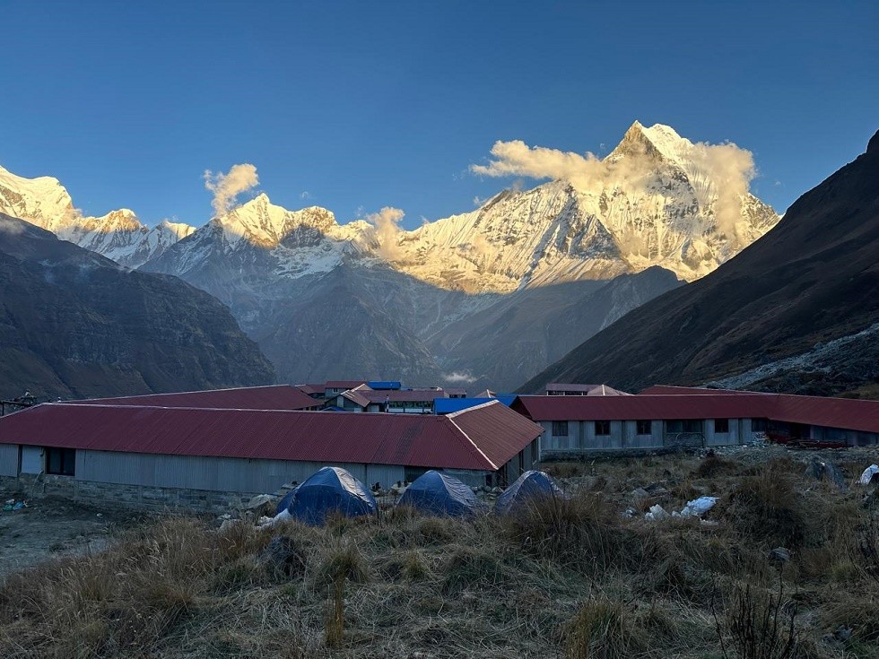 Additionally, the stop at Machapuchare Base Camp (3,700m) as an acclimatization prior to moving to Annapurna Base Camp helps the body get accustomed. Spending a few hours exploring nearby ridges or taking short walks improves oxygen circulation. The temperature often drops below -10°C here, so proper layering and rest are essential.