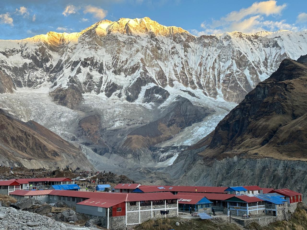 After Deurali you push on to Machapuchhre Base Camp - 3,700 m, (optional overnight) and then onward to the high point of your trek: Annapurna Base Camp - 4,130 m. At base camp, you are surrounded by huge peaks like Annapurna I - 8,091 m, and Machapuchhre - 6,993 m. On the descent you retrace back down via Deurali, Bamboo, and eventually to Nayapul and Pokhara. The gradual ascent especially in winter helps with acclimatization and reduces altitude-risks.