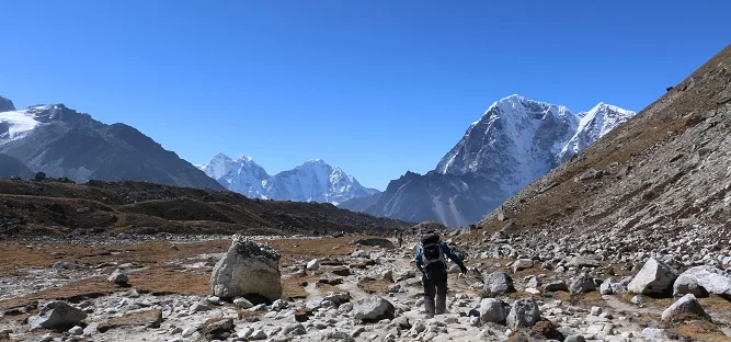 The EBC trek includes high-altitude challenges like crossing the moraine of the Khumbu Glacier, especially near Gorakshep, where the thin air makes each trekkers hard to breath. Therefore, trekkers doing EBC Trek should be careful about it.