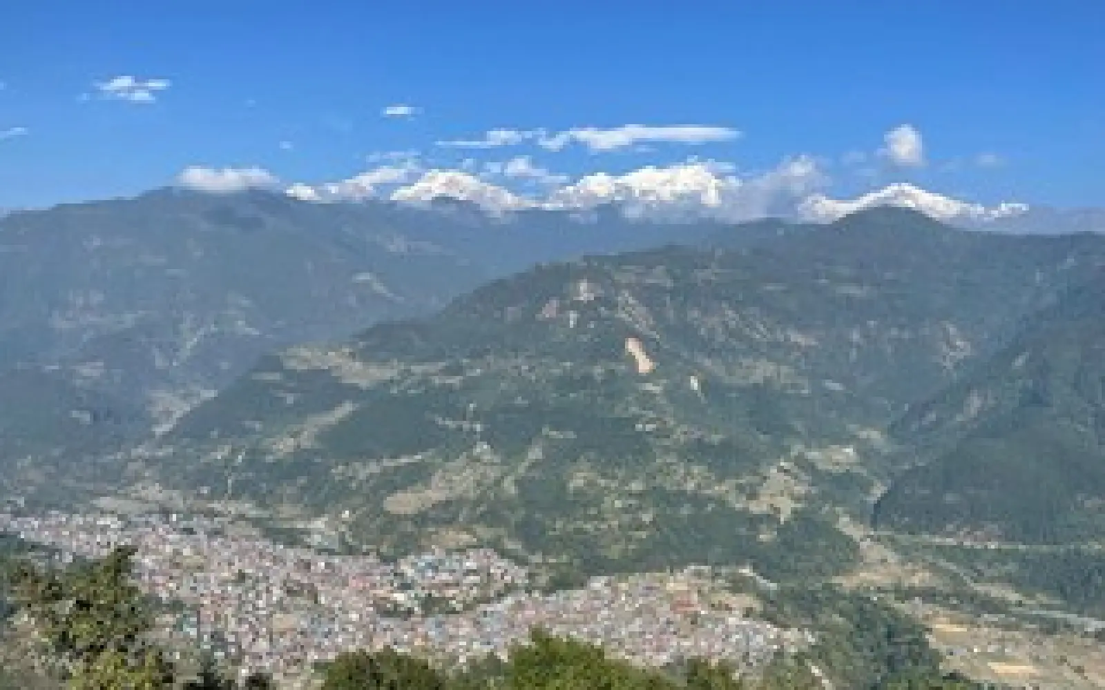 In fact, the landscape around Besisahar is hilly with regular small villages and patches of forest. To the north are distant Himalayan summits such as Annapurna and Manaslu, visible on clear days.