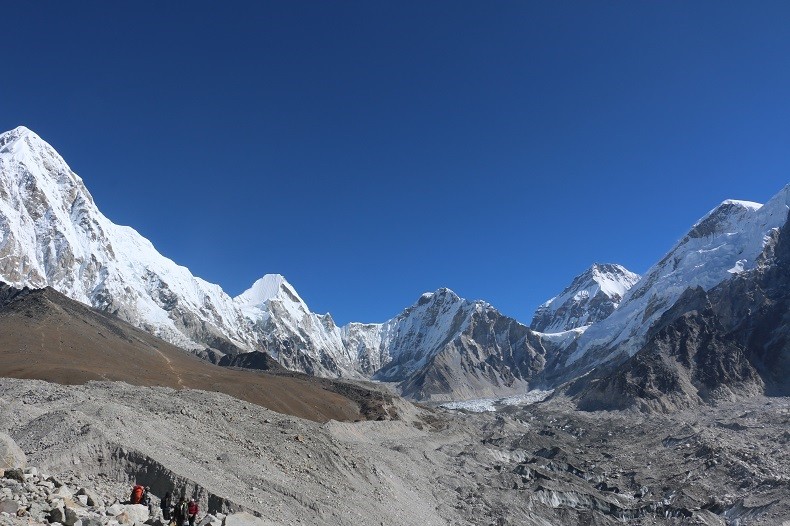 Besides, you walk to Lobuche (4,940 m) on foot along glacial streams and rocky paths. You then reach Gorakshep (5,164 m), the final destination before reaching the base camp. Go back to Gorakshep after lunch and hike to Everest Base Camp at 5,364 m.