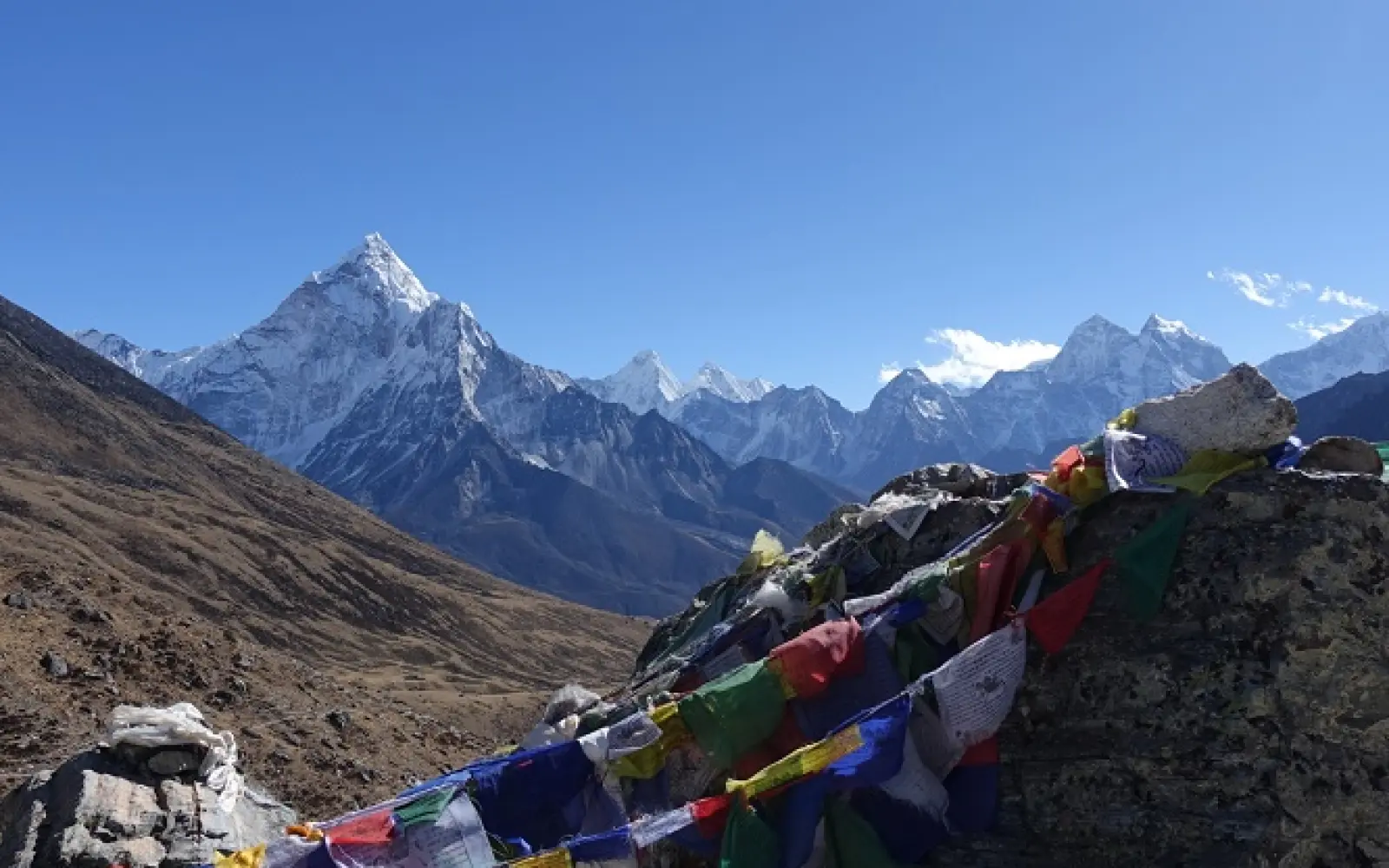 Next, mountain views in EBC Trek in November are clear and spectacular. Mount Everest (8,848.86 m), Lhotse (8,516 m), and Ama Dablam (6,812 m) rise against deep blue skies. Likewise, Kala Patthar (5,545 m) sunsets color the peaks orange and pink. With reduced humidity, photographic conditions improve. In brief, November offers excellent visuals.