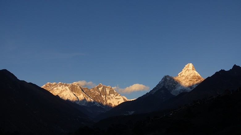 Second, the Himalayan peaks' view is just stunning during EBC Trek in October. Mount Everest (8,848.86 m) looks different and gigantic from Kala Patthar (5,545 m). Likewise, Lhotse (8,516 m), Ama Dablam (6,812 m), and Thamserku (6,608 m) shine brightly. The sun's rays put golden hues on snow-capped peaks. So, October is paradise for photographers and mountain lovers.