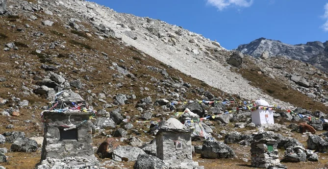 Sudden Drop in Temperature: Nights are cold (-5°C to -10°C); extra layers might be needed. For Example: Lobuche and Gorakshep have freezing temperatures in Springtime: March, April and May.