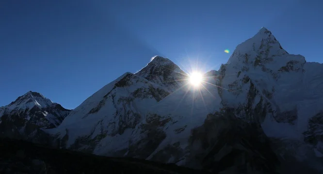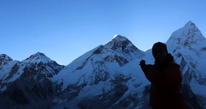 Sunrise over Everest viewed from Kala Patthar will be surreal in EBC Trek in Spring, with golden hues lighting up the peak as the weather is astonishingly clear.