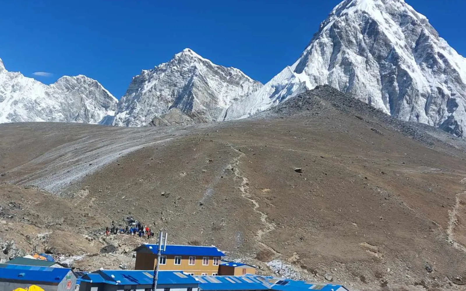 Above all, Gorakshep offers basic amenities for high-altitude trekkers. There are tea houses and lodges that offer simple rooms with blankets and beds. However, the rooms are small and shared. The heating is minimal, and thus, it is recommended to bring warm clothing.Also, hot water is usually only found in the main lodges in Gorakshep and, at times, at an extra cost. Electricity is supplied by solar panels and small generators. This renders power intermittent, especially during inclement weather. Wifi is rare and usually slow.Likewise, the dining options in Gorakshep include basic Nepali food like dal bhat, noodles, and soups. Fresh fruits and vegetables are unavailable due to remote landscapes. Trekkers are forced to rely on packaged snacks and boiled water. Good hydration and nutritional intake ensure acclimatization.Also, there are no medical facilities in Gorakshep. Trekkers who develop altitude sickness or emergencies have to descend or use helicopter rescue. Oxygen cylinders and basic first aid kits are available in some lodges. Guides and porters help with safety.