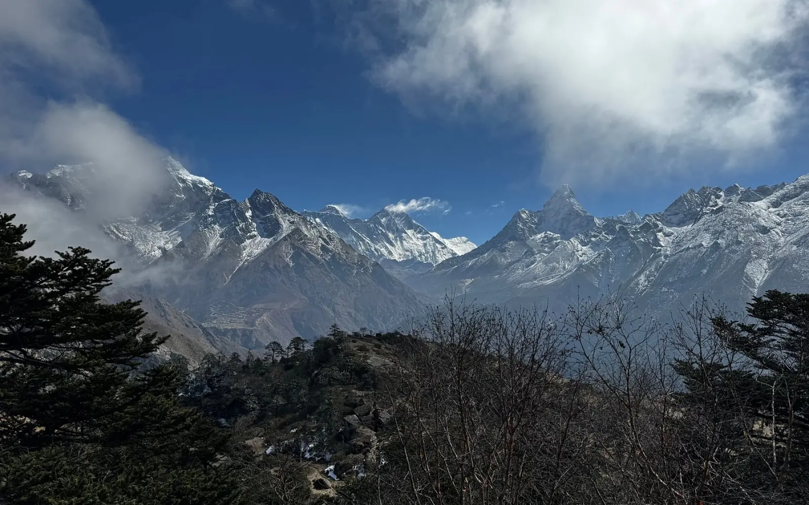 View Mount Everest (8,848 meters) and surrounding peaks