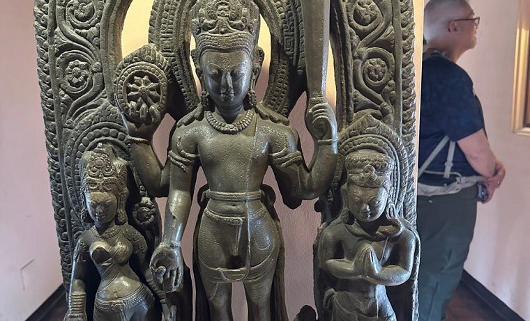 The courtyard at Changunarayan features centuries-old stone sculptures in an open-air setting.
