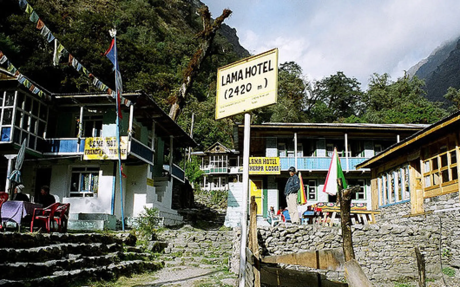 Lama Hotel. The trail gradually rises through beautiful rhododendron forests, along the
