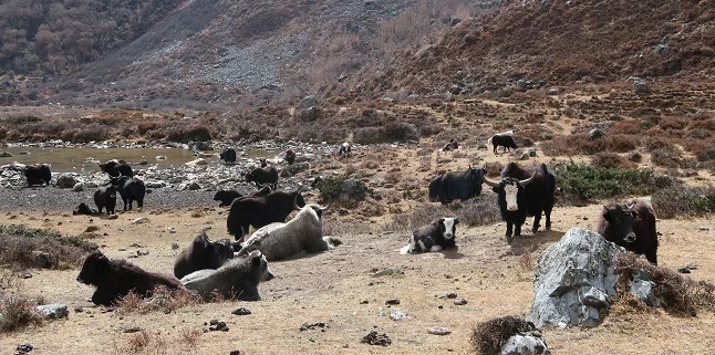 Trekker gets to witness newborn yaks grazing in the lush alpine meadows in Langtang National Park in Langtang Valley in March, adding charm to the beauty of the trek.