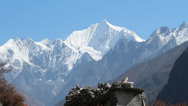 Hiking through Tamang villages like Langtang and Kyanjin Gompa in Langtang Valley in May show the culture influenced by Tibet, monasteries, and local yak cheese factories. The Langtang Lirung Glacier and Mani walls along the trail enhance the spiritual journey.