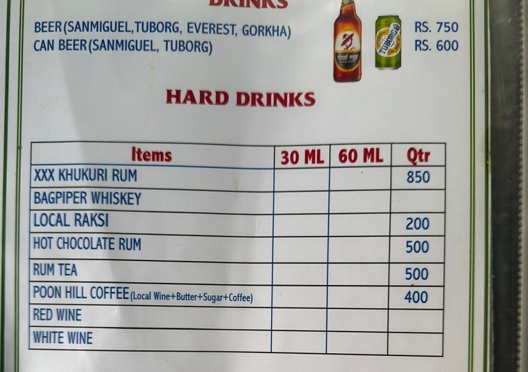 between Rs. 200-1200. At lower elevations, the food costs less and the foods