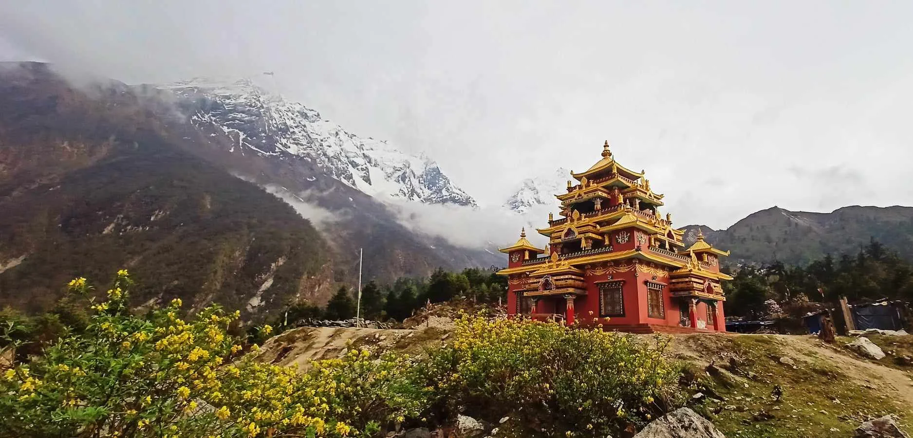 Although mornings are clear, May is pre-monsoon and experiences occasional afternoon clouds and showers in lower areas like Deng (1,860m) and Namrung (2,630m).