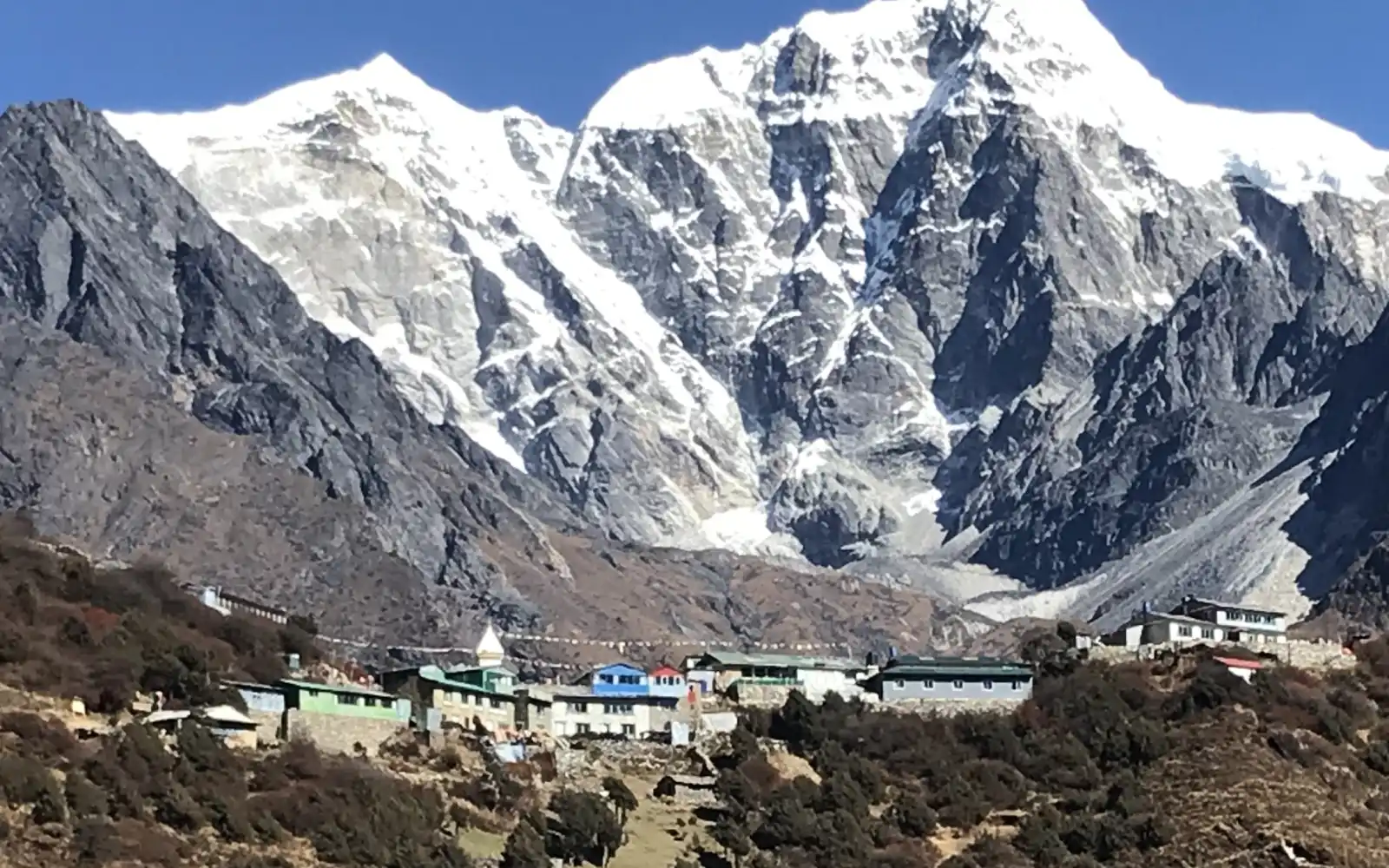 Additionally, Mongla connects significant trails between Tengboche (3,867 m), Phortse (3,810 m), and Pangboche (3,985 m). The village is perched on a beautiful ridge above the confluence of the Dudh Koshi and Imja Khola rivers. Because of this location, Mongla commands superb vistas of Ama Dablam (6,812 m), Thamserku (6,608 m), and Kangtega (6,782 m). The entire landscape is peaceful and pristine.