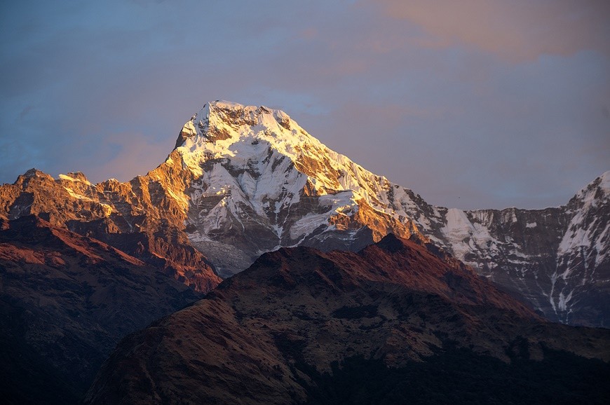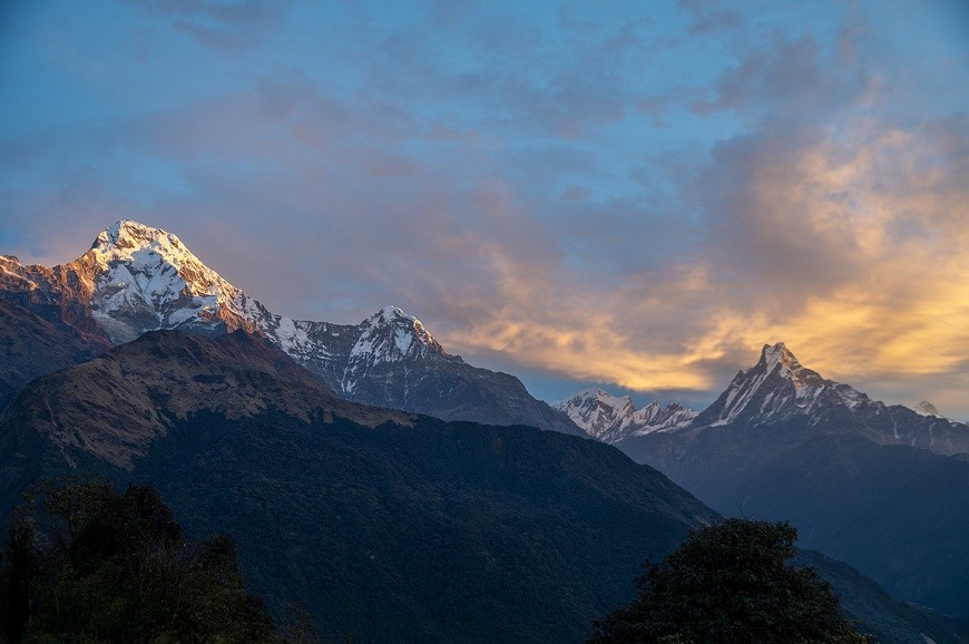 Additionally, the sunrise over Poon Hill is unforgettable. Early risers are graced with golden light upon Annapurna South (7,219 m), Dhaulagiri I (8,167 m), and Machhapuchhre (6,993 m). The snow blushes pink and orange, while the valleys below sleep undisturbed, framing picture-postcard scenery. Beholding this magical moment encircled by silence stirs a depth of emotion-like feelings of wonder and thankfulness.