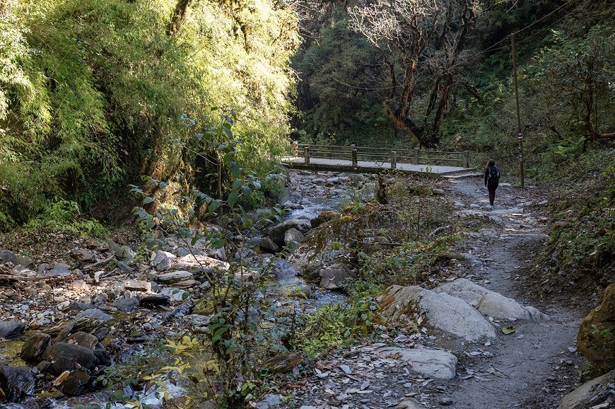 First of all, take an early morning drive from Pokhara to Nayapul, which usually takes two hours. From Nayapul, one starts walking along Modi Khola valley through Birethanti at 1,025 m and terraced fields of Hille. The gentle trail now slowly climbs to Tikhedhunga. Walking time averages four to five hours. Overnight stay at a comfortable teahouse in Tikhedhunga.