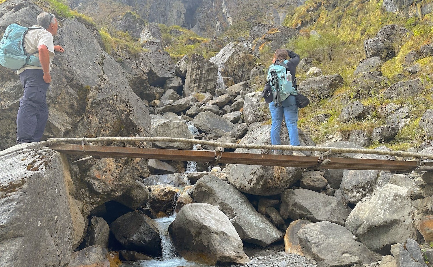 At higher elevations—Himalaya 2,920 m and the broader Himalaya to Sanctuary stretch—water is more scarce. Himalaya relies mainly on snowmelt and springs, so boiled water is the safest option there.