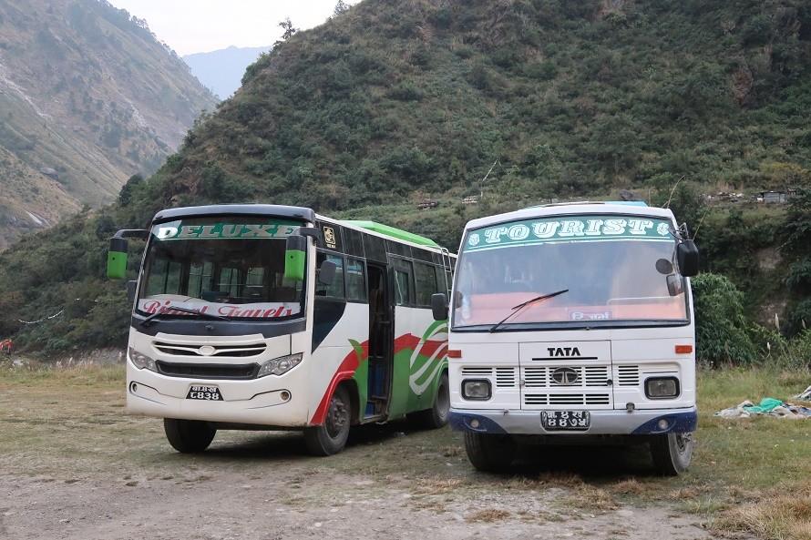 Kathmandu to Langtang Trek transportation guide. The options are private jeep, local bus, and shared transport for easy access to Syabrubesi.